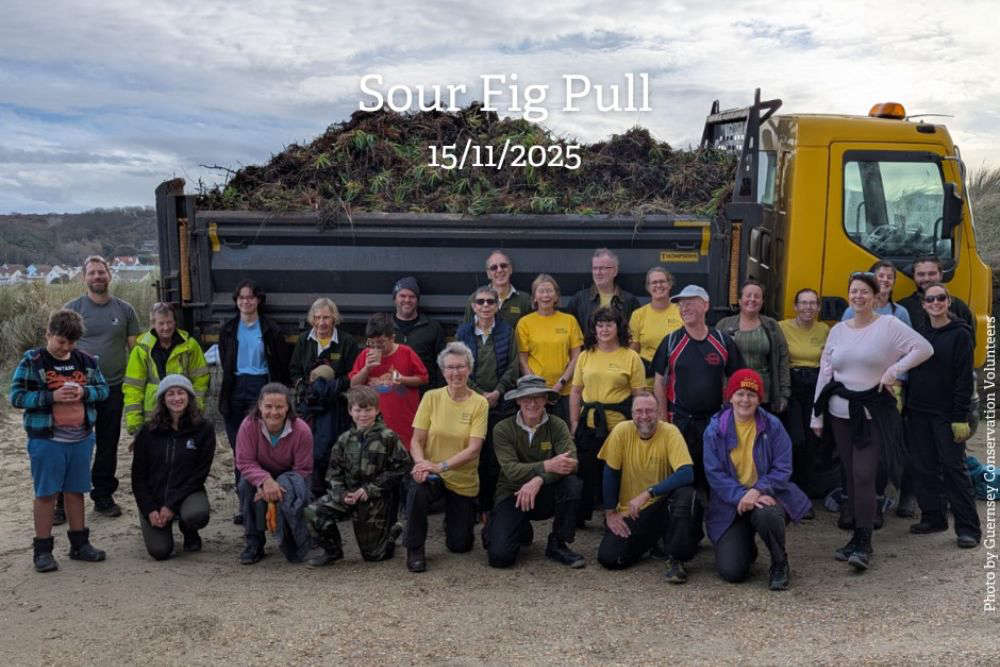 More than 30 volunteers - including 15 from the Guernsey Conservation Volunteers (GCV) and 9 from the Alderney Wildlife Trust - joined forces at the weekend (15 November) to tackle invasive plants on Braye Beach.