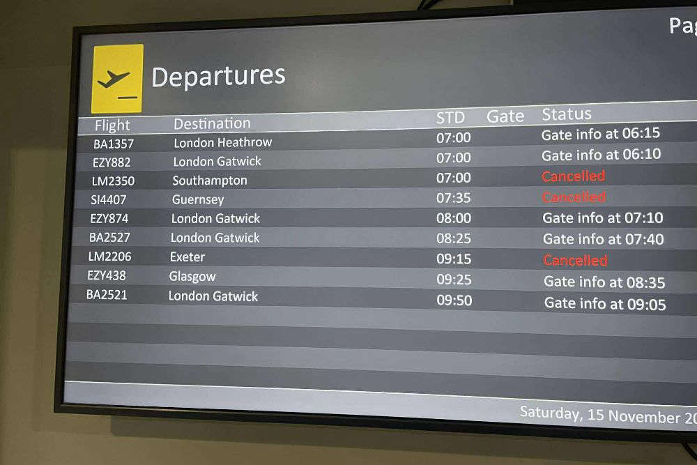 The departures board at Jersey airport this morning showed all Blue Islands flights had been cancelled.