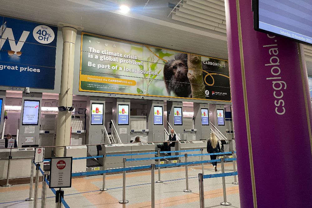The scene at Jersey Airport this morning, with all the Blue Islands check-in desks closed